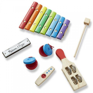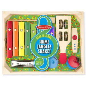 Nem is gondolnád, hogy mennyi kis hangszer elfér egy ilyen kis dobozban, pedig ezzel a készlettel valóban egy egész zenekart fel lehet szerelni. Az ütős hangszereket a xilofon és a csörgőbot képviseli míg a fúvósokat a kazoo és a szájharmonika. Végül de nem utolsó sorban...