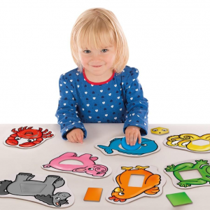 A tartós, vastag kartonlapból készült, fényes és könnyen tisztítható lapok különböző kedves kis állatokat ábrázolnak, melyek testébe tudod beilleszteni a formákat, amik azonos színűek a hozzájuk tartozó állatokéval. Például a fekete mosolygós kiscicához a fekete háromszöget, míg a kék gömbhalhoz a kék kört lehet párosítani,...
