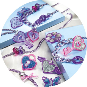 A Crazy Chic szettel készíthetsz vagány, csajos ékszereket. A szettben sok-sok különleges alkatrészt találsz, amikkel gyönyörű, egyedi karkötőket készíthetsz. Jó játékot !