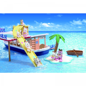 Tengerparti hajóház Sylvanian Families, 55 részből/kiegészítőből áll (1 nyuszi figurát tartalmaz).