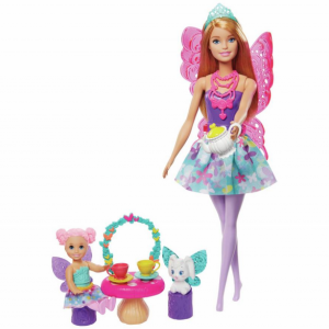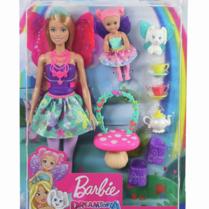Ez a csodálatosan színpompás Barbie Tündérmese tündér díszes szárnyával készen áll rá, hogy belibegjen a képzeletedbe – mert Barbie-val bármi lehetsz! Elbűvölő mintázatú fűző, szárnyak, vibráló tündérszoknya, és tematikus fejdísz – indulhat a tündérmese játék! A Barbie tündért Tündérmese birodalma ihlette. Viseletét kiegészíti egy pár...
