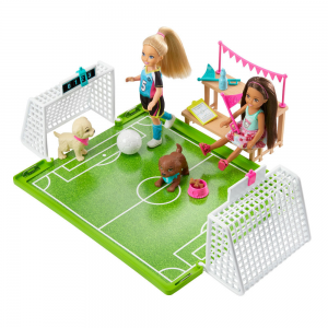 A Barbie Dreamhouse Adventures ihlette a játékot. A fiatal képzelet olyan sok édes történetet képes eljátszani a Chelseával és az ő foci játékkészletével. Két gól, mindegyik állítható góltáblával, egy játékterülethez csatlakozik, ahol gyakorolhat és játszhat – nyomja le a vállait a rúgáshoz !