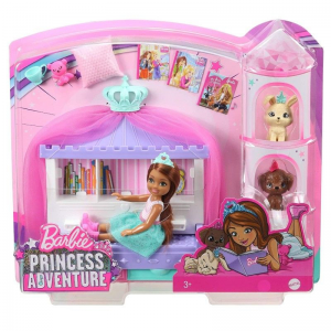Barbie modern sítlusú hercegnő meseszép rózsaszín hajkoronával és menő, divatos kiegészítőkkel büszkélkedhet. Mindennapjait kedvenc cicájával tölti, a kislányok pedig aranyos történeteket játszhatnak el velük. Jó játékot !