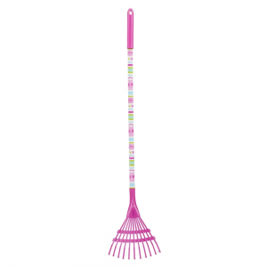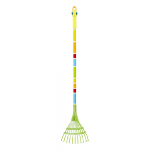 A kerti gereblye erős fémfogakkal rendelkezik, amelyek megkönnyítik a hat éves és idősebb gyerekek számára a levelek és gallyak gyűjtését. A fanyelet élénk színekkel, vidám csíkokkal, szívekkel, virágokkal díszítették és könnyen tisztítható. A lombseprű rendelkezik egy praktikus hurokkal a tetején, hogy könnyen fel lehessen akasztani. ...