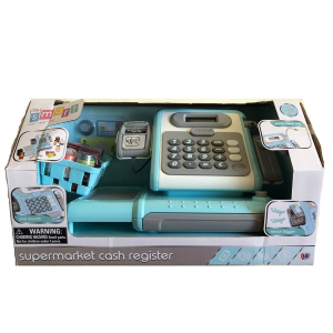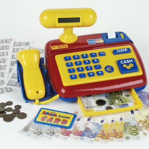 Elektronikus pénztárgép – reális szkennerrel és számológép funkcióval – akkumulátorral működtethető – hitelkártyával – papír adagolóval – csengőhanggal a pénztárgép kinyitásakor vagy hitelkártya behúzásakor – játékpénzzel Hossz:28 cm Szélesség:17 cm Magasság:14 cm