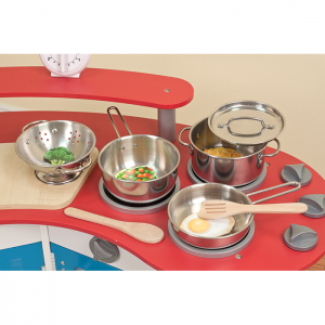 Ez az edényszett olyan rozsdamentes acél edényeket tartalmaz, amit még Anyu és Apu is megirigyelne! Méretüknek köszönhetően élethű szerepjátékok játszhatók velük. Méret: 32.258 x 14.986 x 14.986 cm